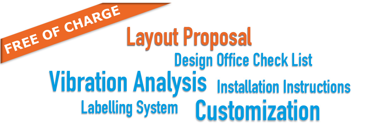 安装一个可靠的排气管系统 的第一步是排气管设置的图 纸(二维)或模型(三维)。根据给定的规格,在船厂 的技术人员密切合作下,我 们的工程师可得出弹性支承 系统的技术配置。